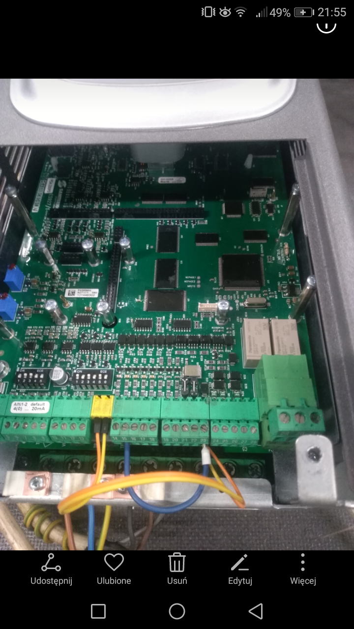 Drugi tor tego stycznika/przekaźnika wykorzystujesz do podania sygnału START oraz ENABLE do falownika.