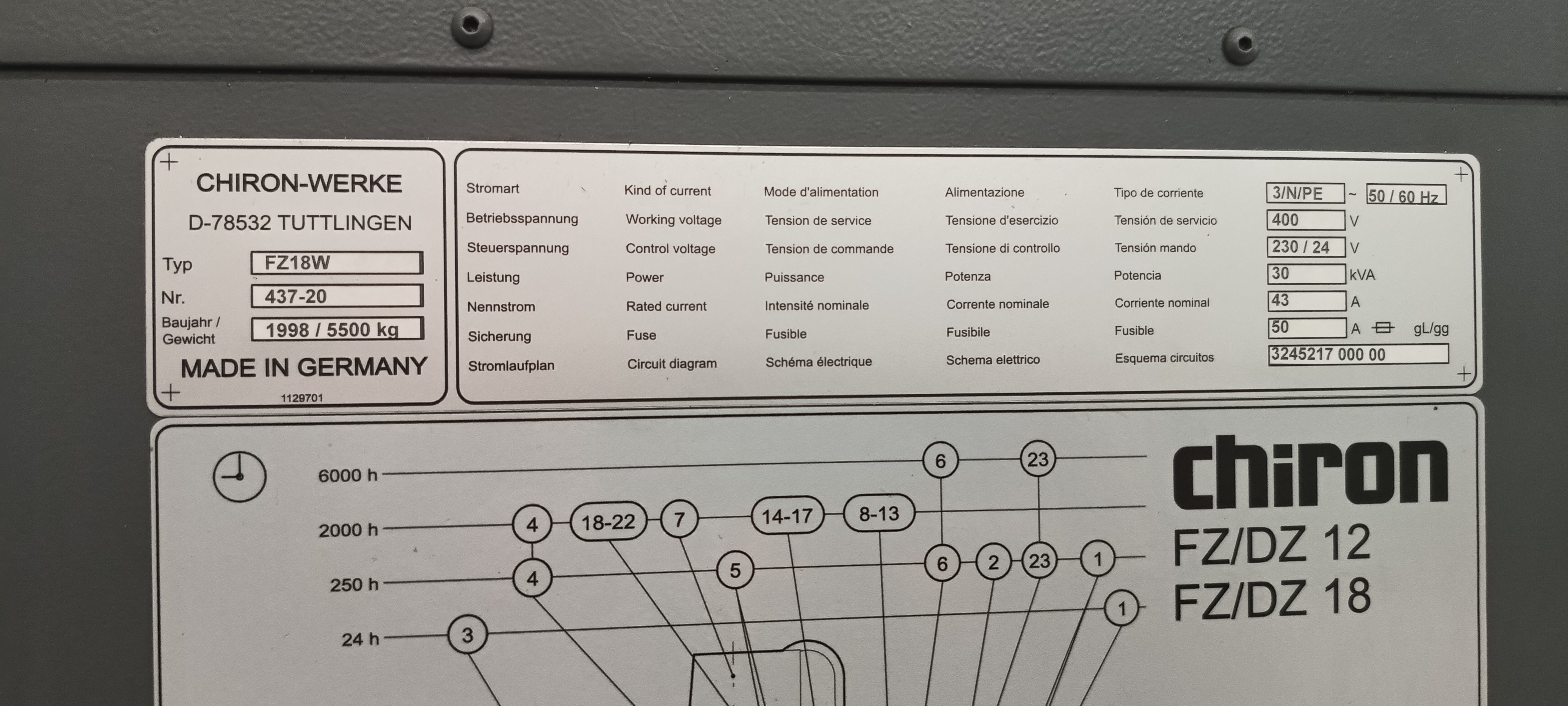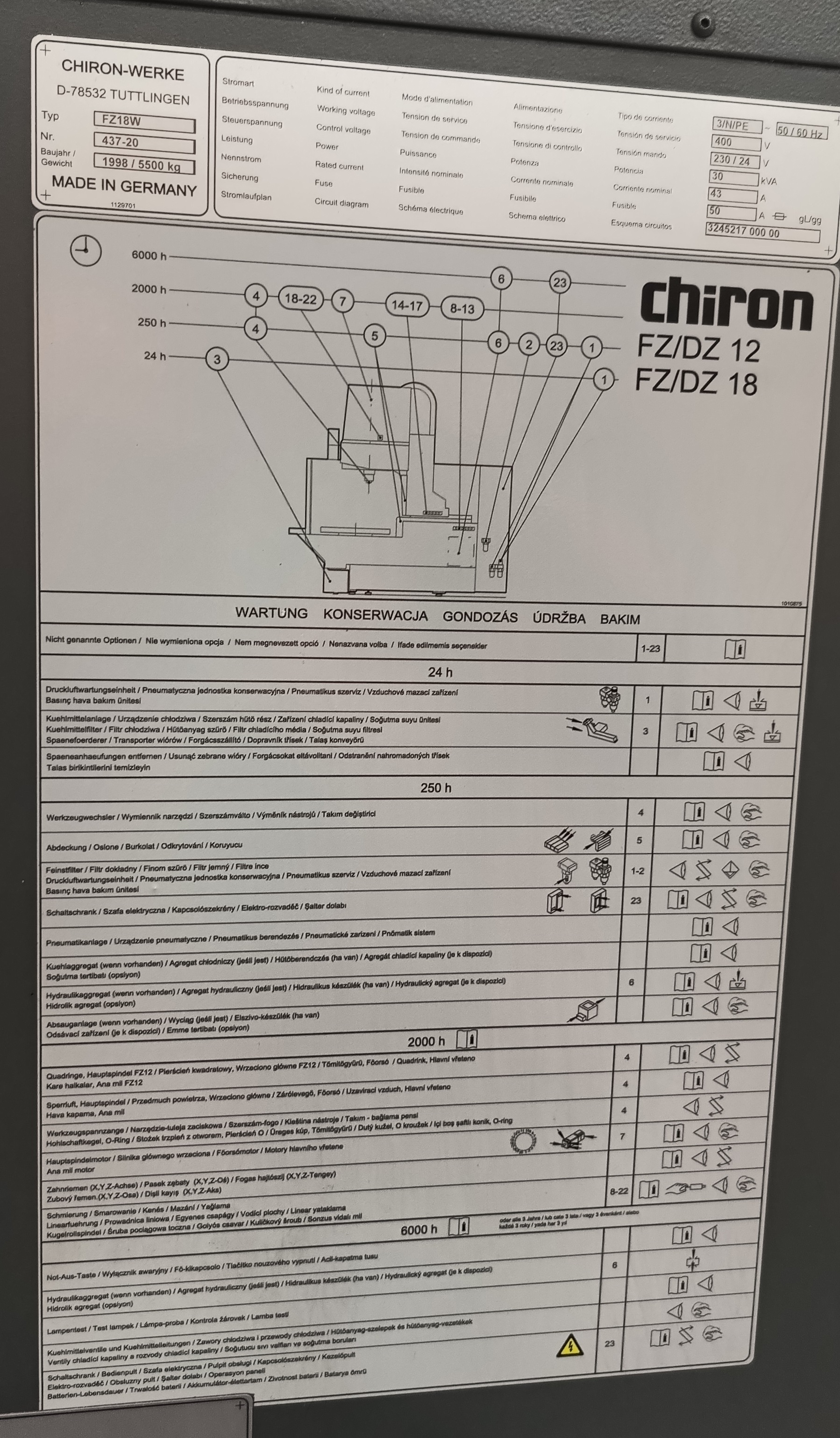 Nasza firma (LEIBER Poland GmbH) ma na sprzedaż frezarkę Chiron FZ18W 437-20 z 1998 roku.