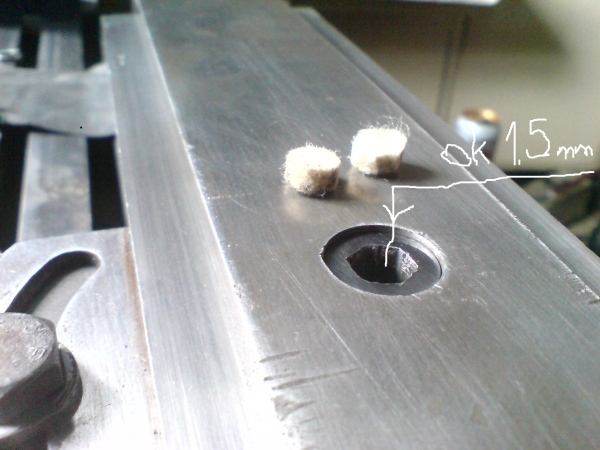 Na kasowanie luzu jest dość mało miejsca , proponuję takie rozwiązanie jak na zdjęciu w osiołku powinno starczyć dożywotnio ... Co do Twojego projektu to mogłeś między ściskające śrubę klepki dać papier lub preszpan 0.1-0,2 mm miałbyś również spory zapas regulacji zamiast pracochłonnej wymiany mosiężnych podkładek [ pisałem o tym stronę wcześniej ; ] . No i niektóre śrubki mógłbyś poskracać