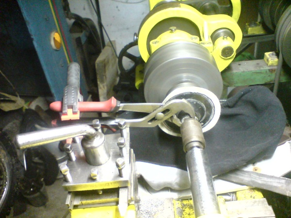 Niektórzy się kiedyś pewnie zastanawiali jak mi się tak ładnie udaje dopolerować obudowę uchwytów tokarskich , patent jakich mało , nie będę opisywał , zdjęcie chyba samo wystarczy, polerowanie odbywa się samoistnie , mogę w miedzy czasie coś naprawić innego i zarobić kasę którą i tak utopię w OUS-ie