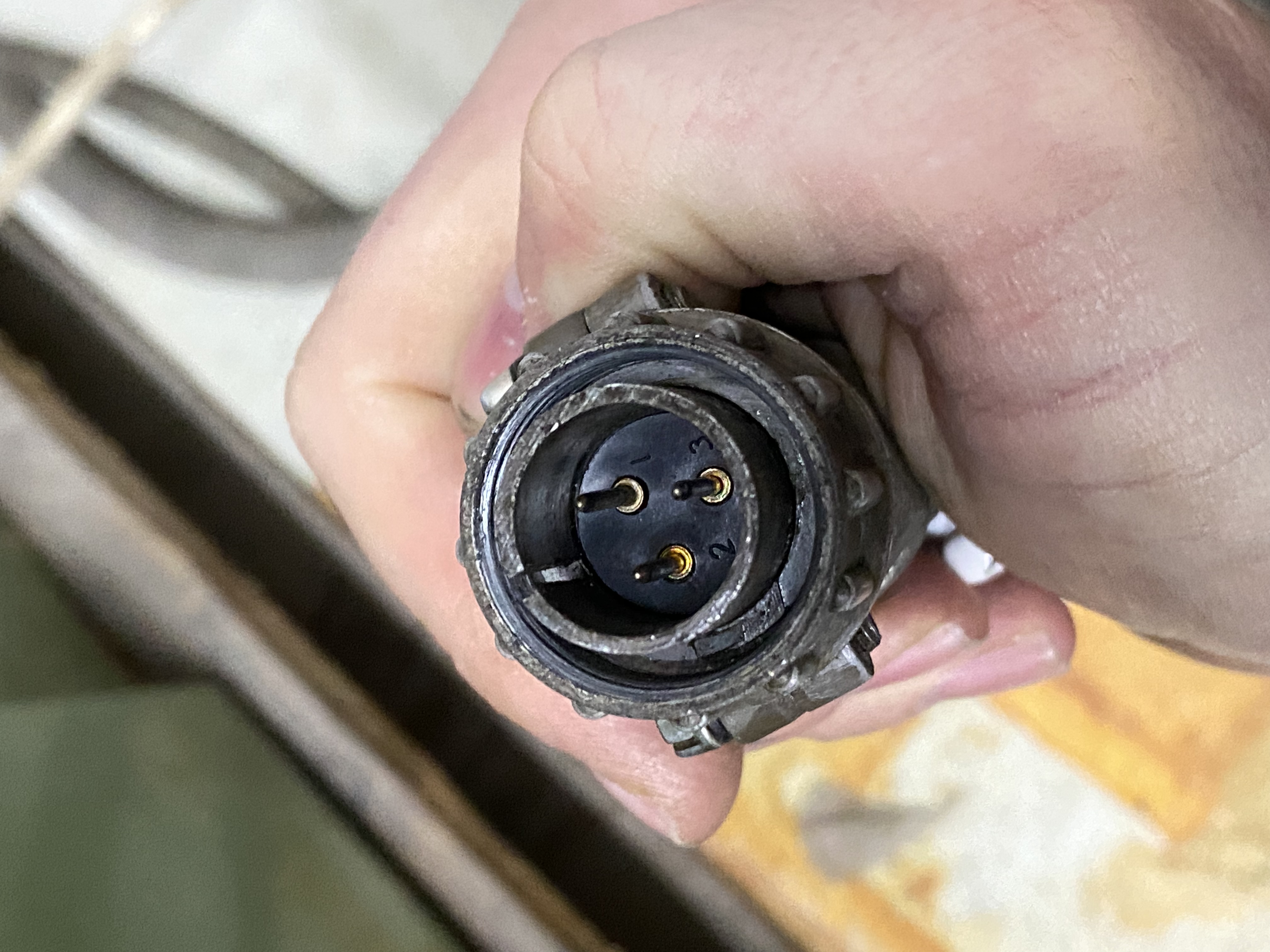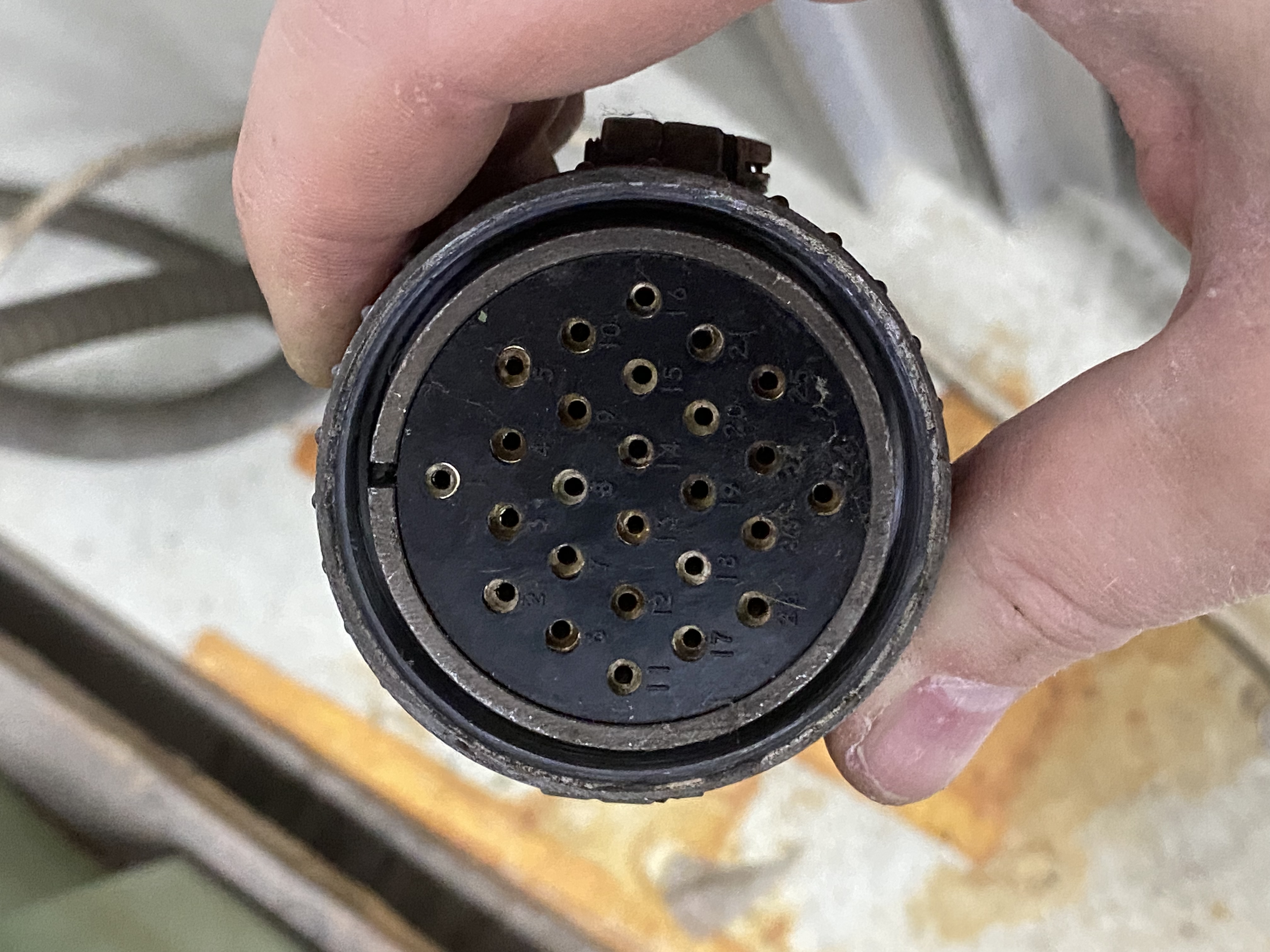 Tak jeszcze dodam - średnica zewnętrzna tej dużej to ok. 46mm, gwint nakrętki chyba M50. Jedyna wtyczka jaką znalazłem z takim rozstawem pinów to "WS28", ale jest dużo mniejsza