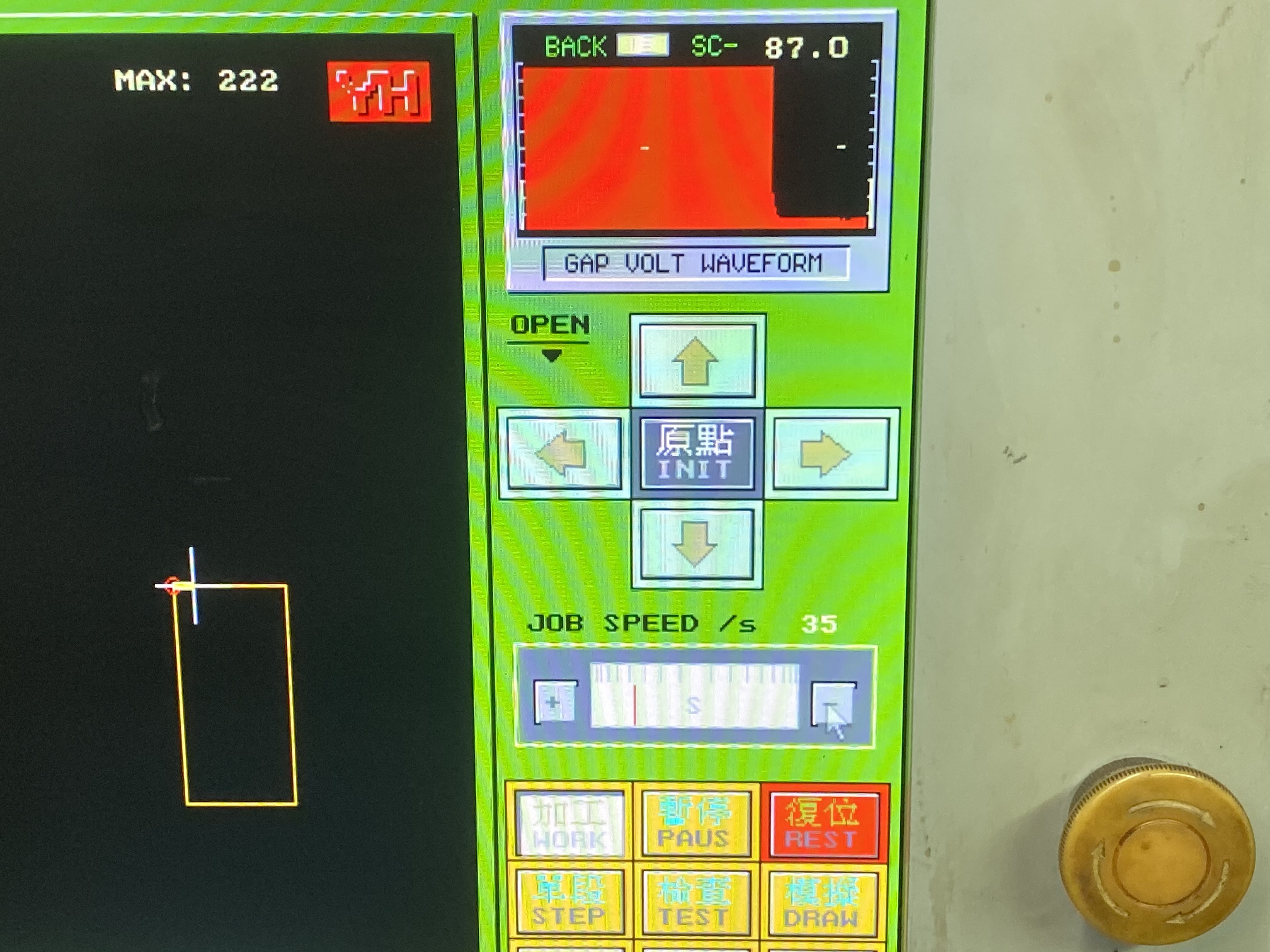 Kupiłem jakiś czas temu chińską drutówkę DK7725. Próbowałem ją dzisiaj uruchomić i natrafiłem na problem - osie nie reagują na sygnały ze sterowania. Dodam, że wcześniej nie używałem tego typu maszyny i pierwszy raz widzę software na jakim chodzi. Narysowałem do wycięcia prostokąt, żeby cokolwiek tam było, załączyłem bęben i napięcie na drucie i włączyłem program przyciskiem "WORK". Na wykresie w programie pokazuje się zdaje wysokość napięcia, napięcie spada blisko zera kiedy bęben zmienia kierunek obrotów, kursor na ekranie porusza się wzdłuż podanego kształtu, ale nie ruszają się osie. Sterowanie jest podłączone do maszyny dwoma kablami (w załączniku zdjęcie). Jest trzecie gniazdo, ale nie mam do niego kabla i nie wiem do czego służy, o ile w ogóle jest używane.