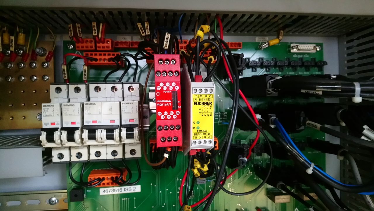 Po dłuższym szukaniu wymieniłem moduł bezpieczeństwa Bridgeport MSA16 i problemy z frezarką się skończyły.