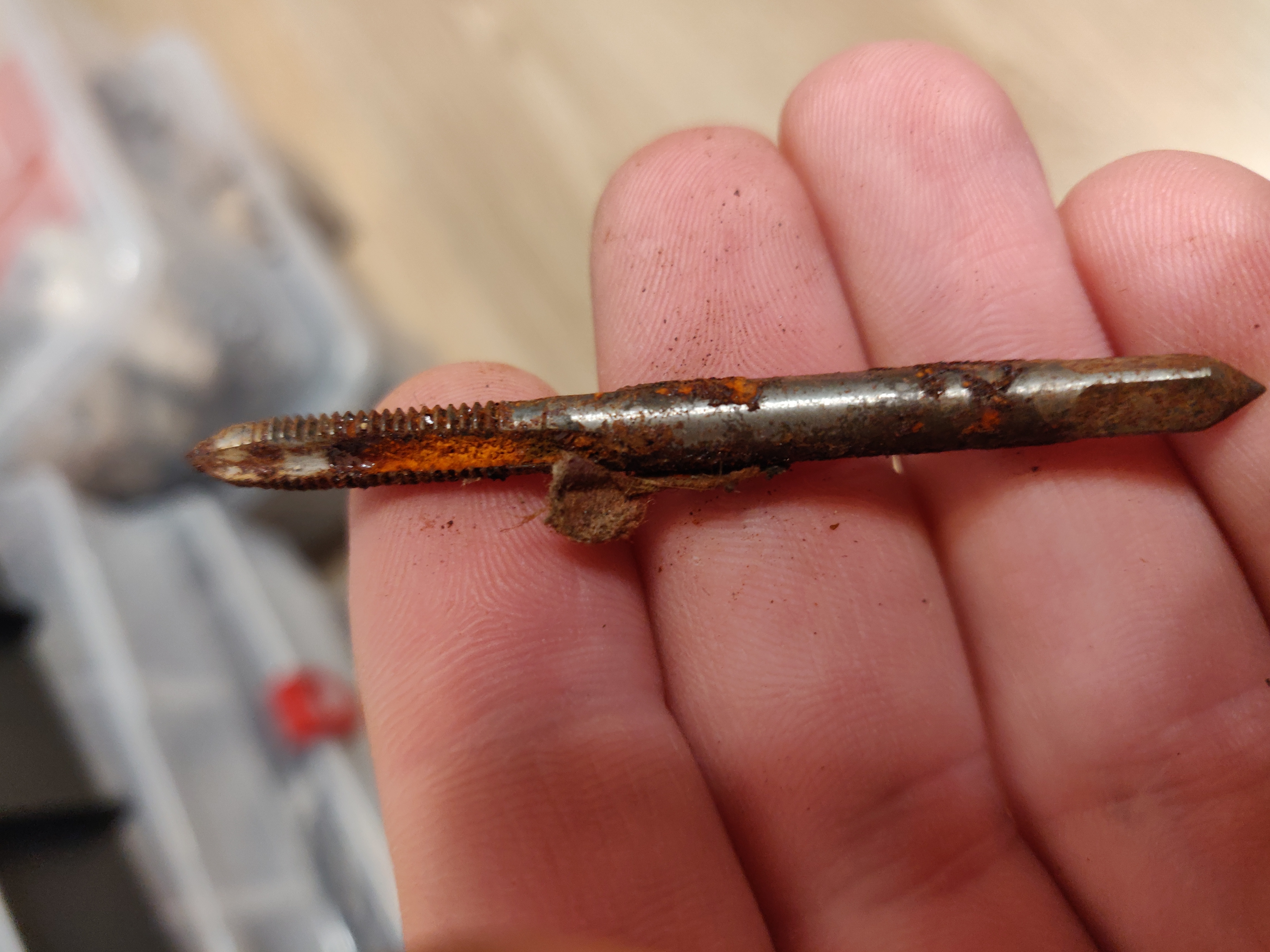 Mam takie oto efekty na niektórych gwintownikach, leżących w jednym pudle z innymi w dużo lepszym stanie. To wygląda jakby coś przylepione lub jakieś chlorki, częściowo widać że jest jak nowy (bo jest nowy).