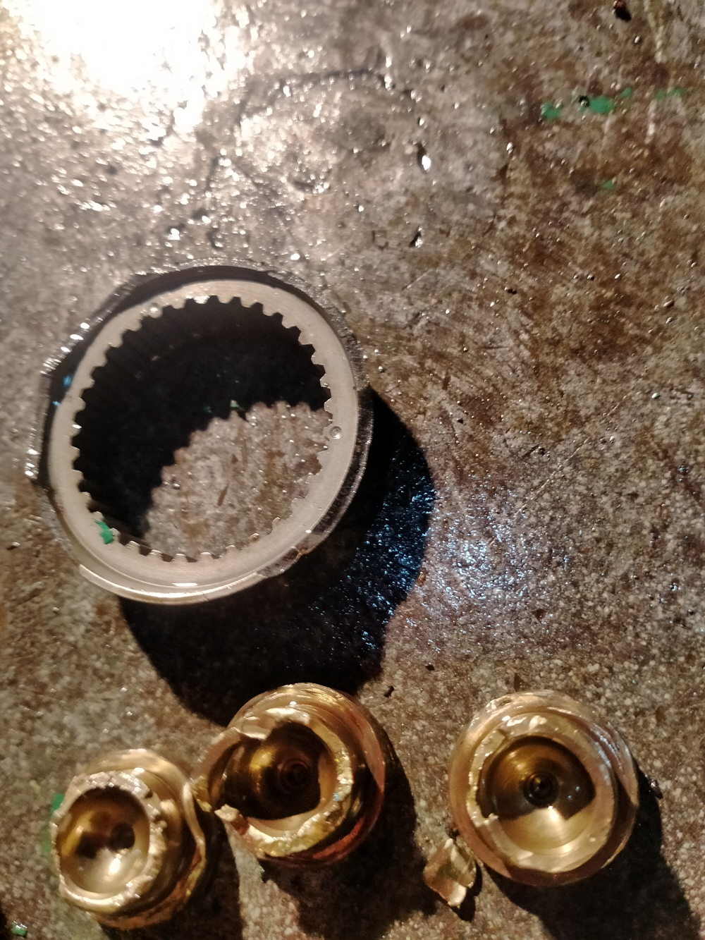 Po demontażu silnika hydraulicznego stwierdziłem że silnik się nie kręci. Po rozebraniu stwierdziłem dość duże uszkodzenia części wewnętrznych silnika hydraulicznego. Załączone fotki uszkodzonych części.