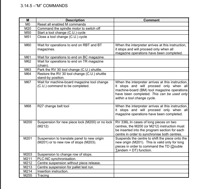 M200, M212, M201, M203 odpowiadają za zatrzymanie programu z odblokowaniem elementu lub bez odblokowania